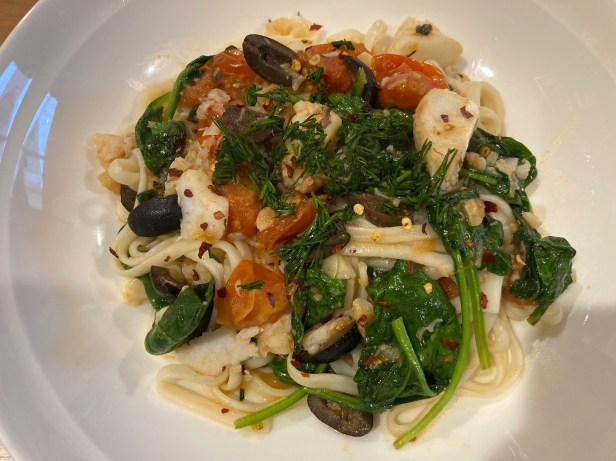 Spinach to wilt and chilli flakes and dill to finish it off! I didn’t have any basil! The dill was for another dish which I haven’t gotten around to making.