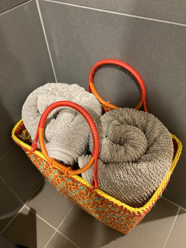My towels are now in a basket I got from my girl for Christmas.