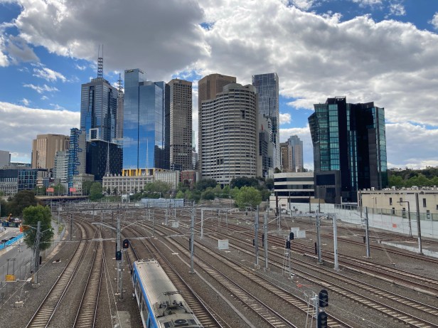 View of the city as trains from the East and South East rolls in.