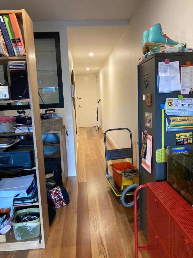 So I can move the rack to the wall on the right (where the locker was). That way it double as hangers for my bathroom which is right next to it. Plus I don’t bump into them going to the loo in the middle of the night. My bedroom is to the left of the rack.