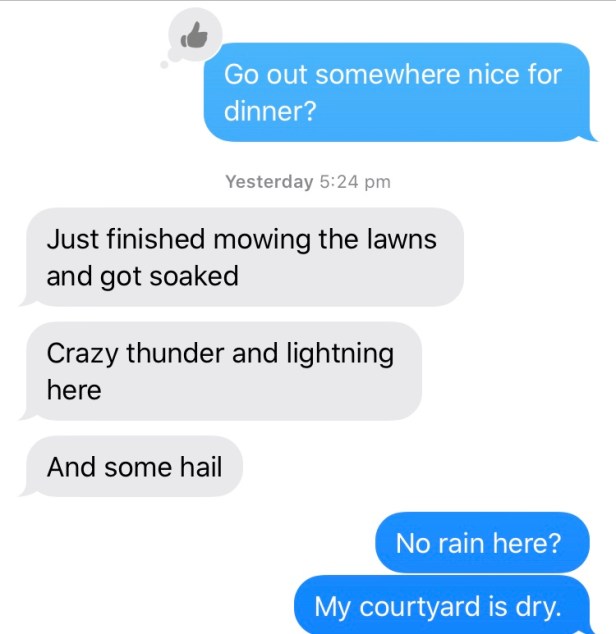 It was late when he finally rang me at around 6:13pm! I was all upset as it felt like he didn’t want to go out because it’s pouring down! He said he was just stating the fact.