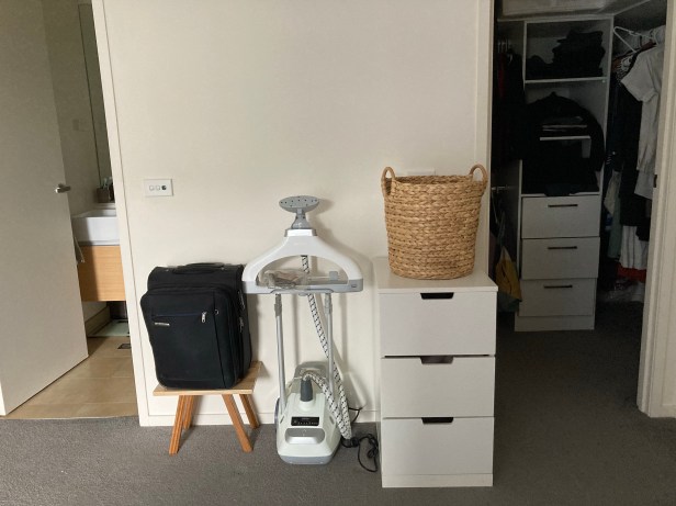 Nowhere to put my stuff. It’s chockers. I’ll get rid of the white unit when I bring back Mr Wanderer’s chest of drawers.
