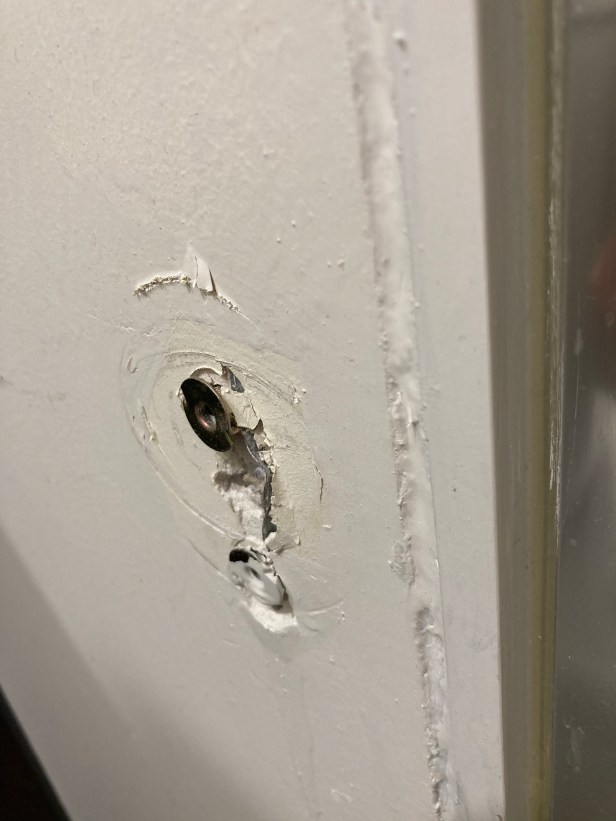 Need to fill up these holes! The old owner didn’t do very well! The toilet roll holder keeps on falling off! He must be a lazy bugger as he’s left the anchors in!