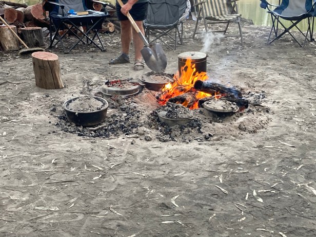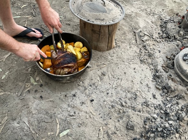 Camp fire ovens! Lamb roast for Easter Sunday’s dinner.