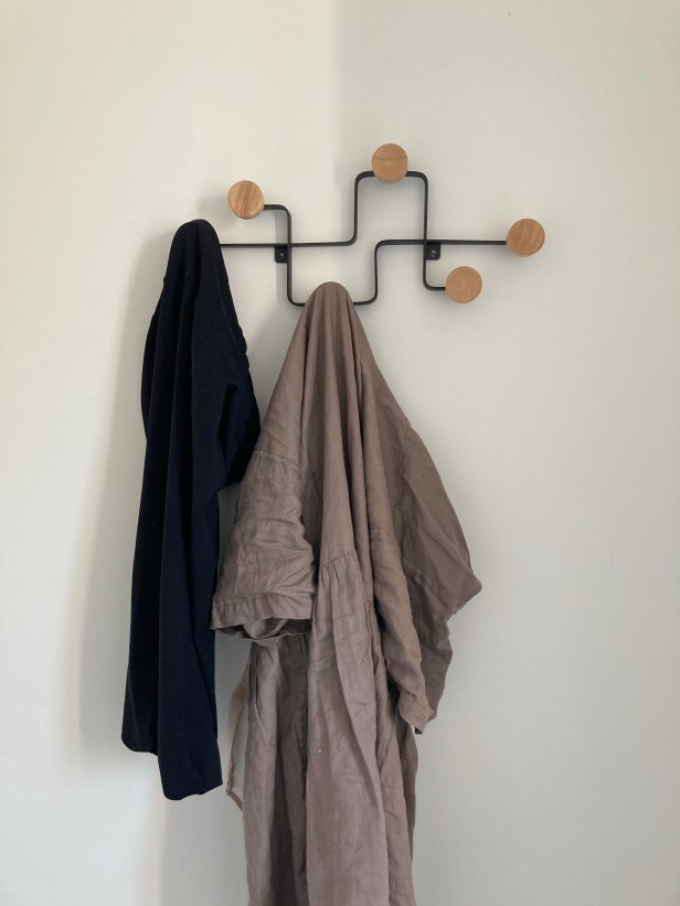 My coat rack is on the wall! I cheated and didn’t paint the wall. Only touched up the holes I made!
