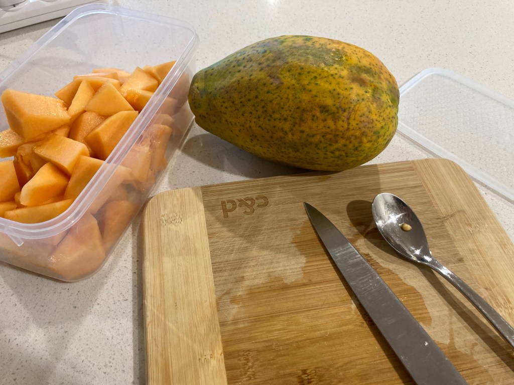 Two hours and he’ll be here. I’m still cutting up fruit.